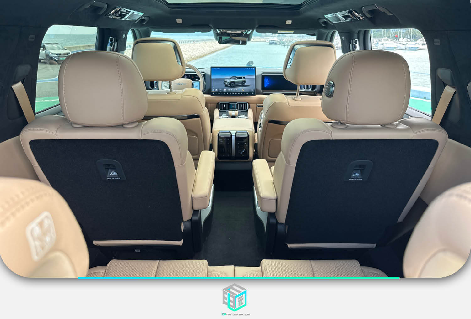 豹8將采用三排座椅布局設計,有6/7座兩種布局可供選擇。車內座椅都較為寬大,填充物很厚實,并且支持電動調節,后排地板基本平整,進出第三排很方便。另外,第三排還配備充電口、杯架等,進一步滿足后排乘客便利性。
