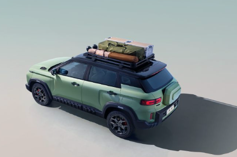 側面來看,明顯進行了升級,除了擁有五幅樣式的熏黑樹杈輪轂以外,車邊唇位置也加強了防護,還匹配了蜂窩樣式的黑色防蹭層加以裝飾,營造出了濃濃的越野感。此外,車頂部分搭載了4個照射越野燈。很明顯,這樣的配置大概率是要后期進行選裝的。