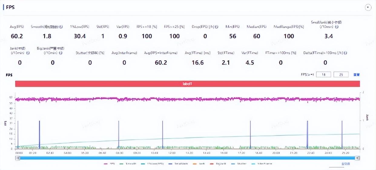 來看實際游戲測試,我們對vivo X200 Pro mini進行了30分鐘《原神》須彌城跑圖測試,游戲內設置極高畫質+60幀模式,實測幀率結果如下: