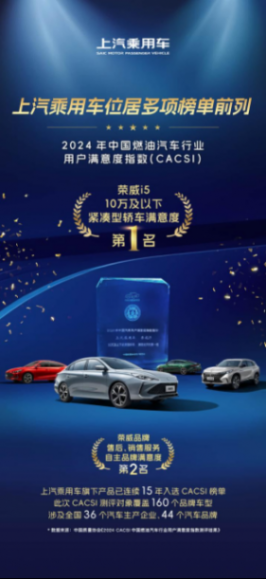 在2024 CACSI評測中,上汽榮威榮膺自主品牌售后服務及銷售服務兩項滿意度第二名,榮威i5、榮威RX5也在兩大細分市場領域以優異成績登榜,其中榮威i5更是獲得“10萬及以下緊湊型轎車”細分市場消費者滿意度第一名,穩坐“家轎市場最具性價比之選”。