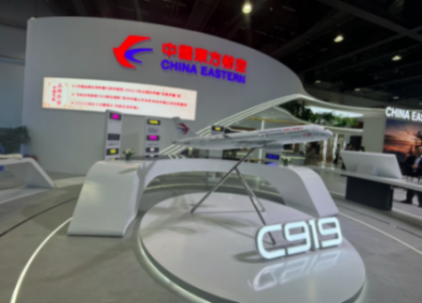 步入東航展臺,一架長約2.5米的C919全球首架交付機大尺寸機模,帶著與實體飛機一致的“全球首架”中國印和“B-919A”機號,在展臺中心顯著位置擺放,吸引觀眾駐足留影。從此處跟隨東航乘務員的講解,觀眾即可觀賞國產大飛機商業飛行以來多個重要時刻的歷史照片。