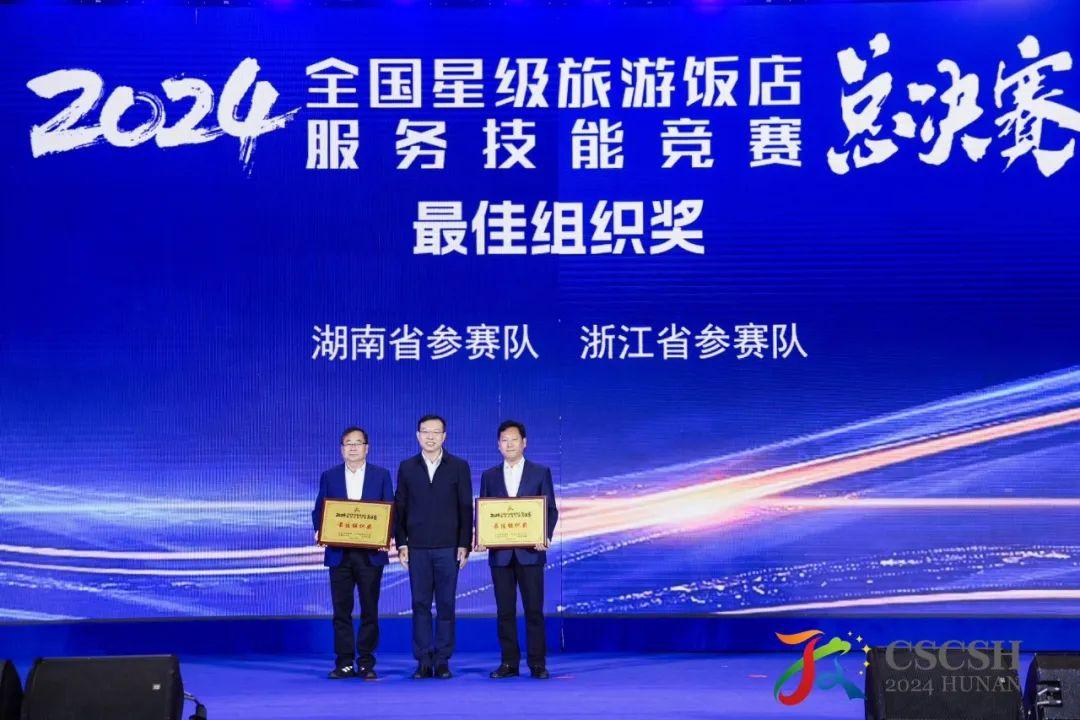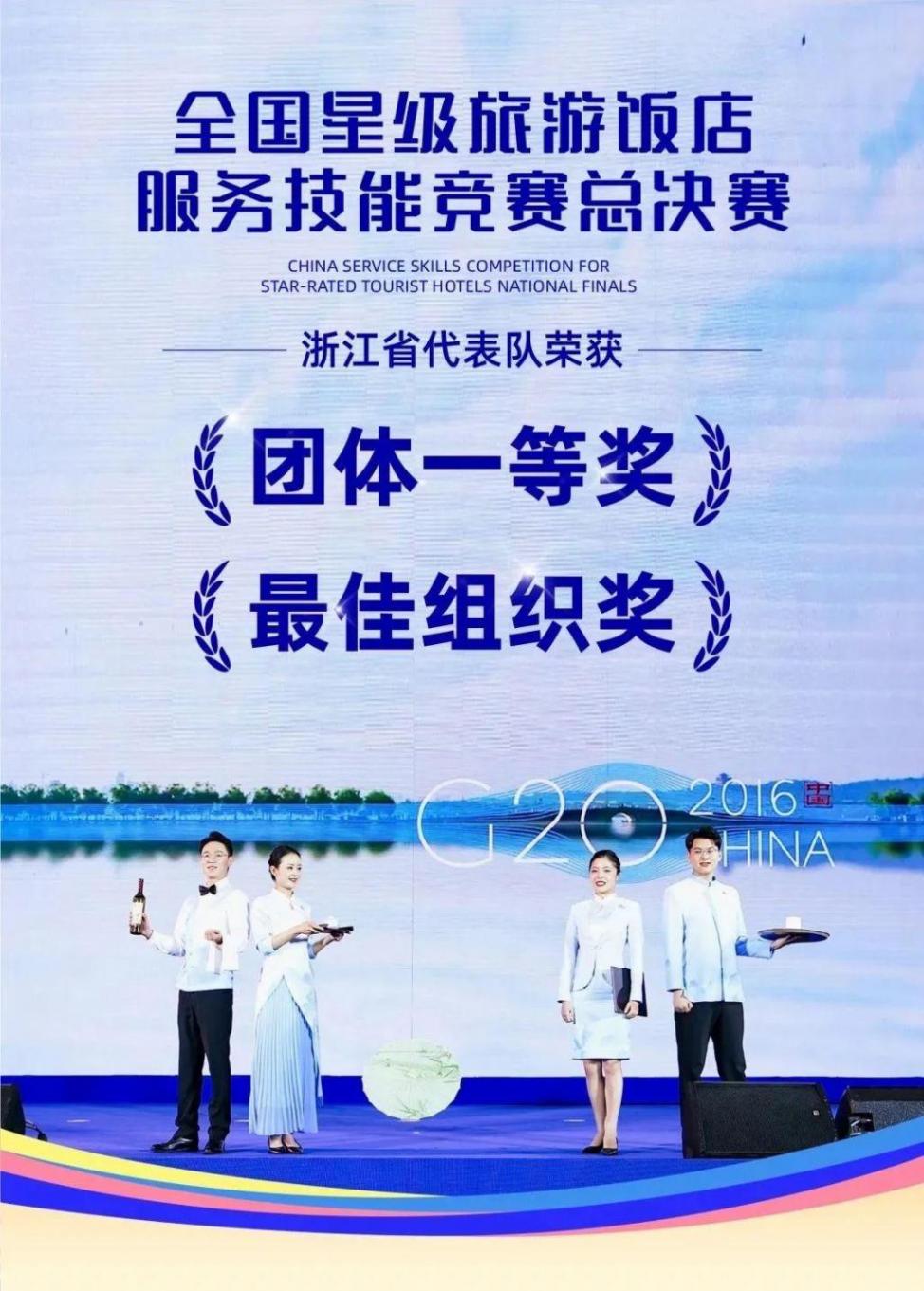 其中,來自浙江世貿(mào)君瀾大飯店的余莎莎,獲前廳服務(wù)全國第4名(三等獎);來自杭州開元名都大酒店的張彤,獲客房服務(wù)全國第3名(二等獎);來自嘉興南湖賓館的沈凱樂,獲中餐服務(wù)全國第6名(三等獎);來自振石大酒店的程偉潮,獲西餐服務(wù)全國第8名(三等獎)。