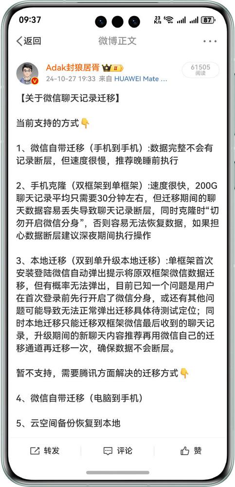 首頁 > 生活分享 > 免費教學 > 博主:微信鴻蒙原生版遷移數據有三種方法 第二種很快