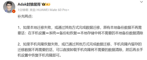 2、如果手機克隆恢復失敗,或已通過其他方式完成數據遷移,手機克隆內留存的遷移數據不再需要的話,可以直接卸載手機克隆將不需要的數據清除,然后再去手機設置中恢復手機克隆即可。