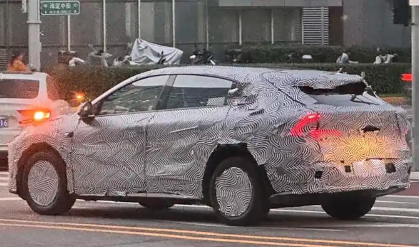 路試車輛進(jìn)行了嚴(yán)密的偽裝,但還是能看出新車采用轎跑設(shè)計(jì)風(fēng)格,車頂線條從B柱開始緩緩下滑,隆起的腰線彰顯出較強(qiáng)的力量感。尾部造型凹凸有致,貫穿式尾燈向內(nèi)彎折,造型簡(jiǎn)潔且富有科技感。