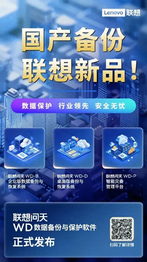 基于這一背景,聯想推出了聯想問天WD數據備份與保護系列產品,該系列產品能夠對企業數據中心的數據以及企業桌面端數據進行備份和恢復,并通過智能平臺實現統一管理。