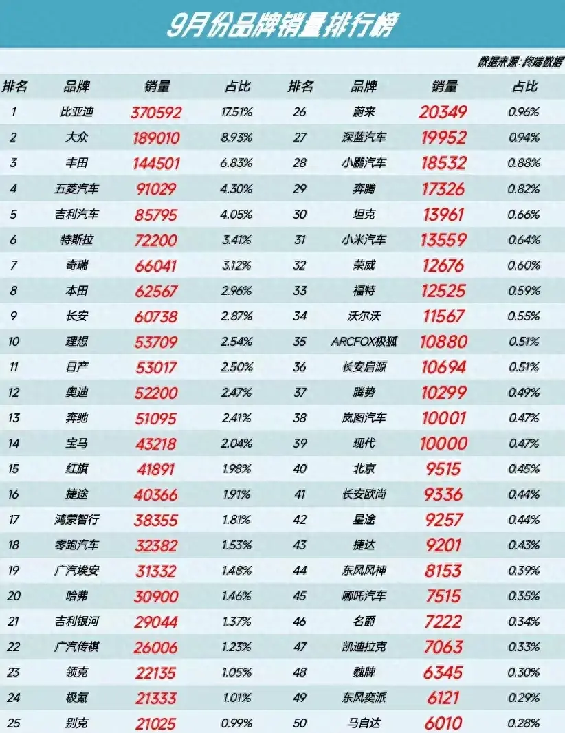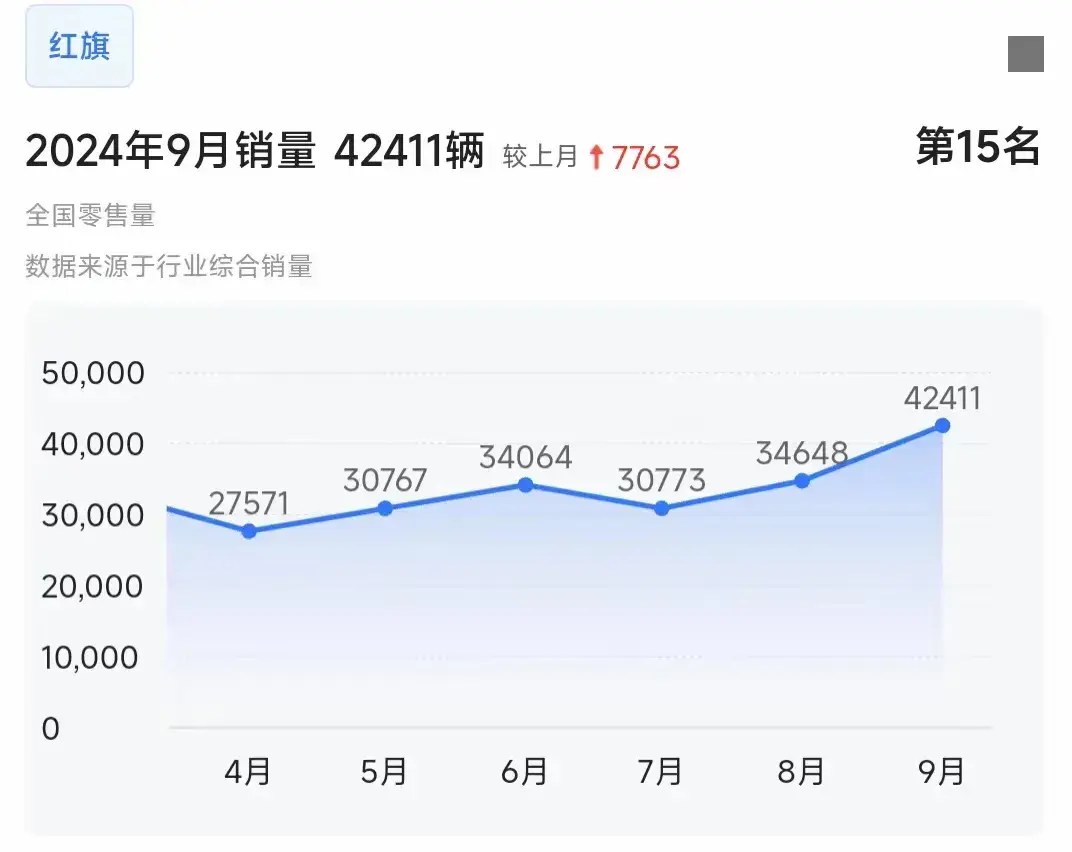 紅旗汽車,這回真火啦!9月份的銷量榜單上,紅旗汽車銷量超過41900輛,排名第15,真是讓人眼前一亮。這可是咱們自主品牌汽車市場的一大亮點,比捷途、哈弗、極氪這些品牌都要強,咱們國產(chǎn)車有戲!