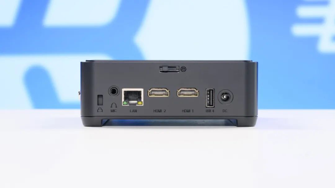 機身后側為電源接口、USB-A 2.0、兩個HDMI2.0、RJ45網口和3.5mm音頻接口;