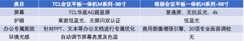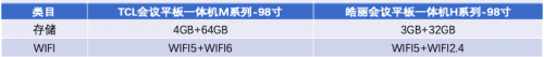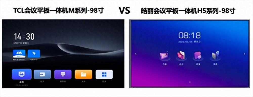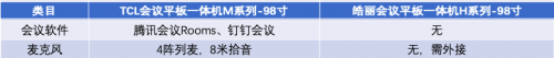 在此背景下,以TCL、皓麗為代表的屏顯設備廠商都推出了會議平板一體機。為了更好給到大家參考,我們特別選了價位差不多的TCL會議平板一體機M系列、皓麗會議平板一體機H5系列,同為98寸的產(chǎn)品來作為對比。