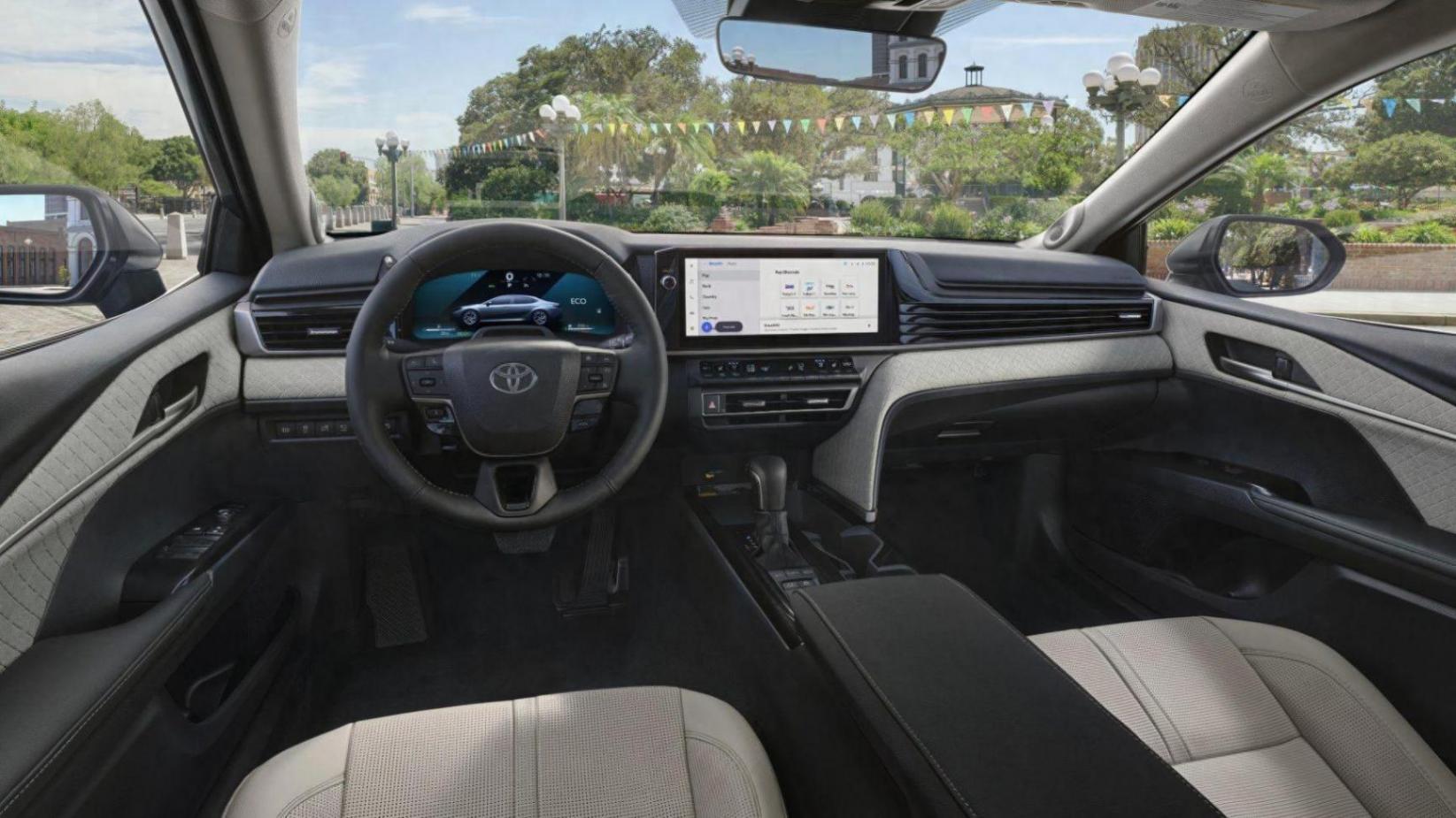 2025款豐田凱美瑞現在已經是第九代了,從內到外都煥然一新。凱美瑞車內的中心位置是一塊12.3英寸中控觸摸屏(中高配),標配一塊8英寸中控屏,支持無線Apple CarPlay和Android Auto手機互聯,以及無線充電、10 英寸平視顯示器、JBL 音響系統、車載 Wi-Fi、數字鑰匙等功能。
