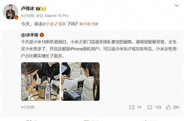 “手感”這個詞聽起來似乎有些抽象,但對于手機來說,它卻是決定用戶是否愿意長時間握持的重要因素。 小米15系列在手感上的大幅改進,無疑是吸引女性用戶的關鍵之一。根據博主i冰宇宙的現場反饋,小米之家門店當天人頭攢動,排隊購買的顧客中女性比例顯著增加。這些女性用戶中,不乏之前使用iPhone的忠實粉絲。小米15系列的“黃金手感”不僅體現在機身的材質選擇上,更在于其重量、厚度和弧度的完美平衡。這種舒適的手感,讓女性用戶在長時間使用時也能保持愉悅的心情。