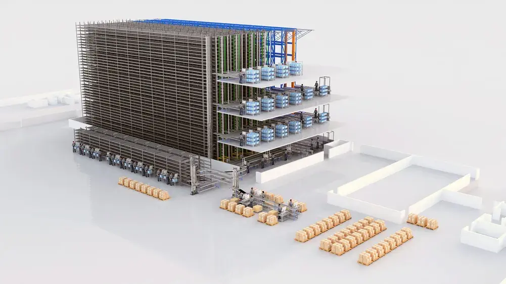 智狼貨到人系統融合了智狼搬運機器人、智狼飛梯機器人、立體貨架等核心組件,以及自動入庫和揀選工作站、空箱自動回流線等輔助設施,共同構成了一個高效、智能的物流解決方案。其“立體”特性體現在對空間的高度利用,能在10米以下的凈空高標庫房中實現高密度存儲,存儲坪效比行業平均水平高出2.5倍。