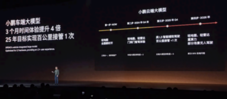11月6日下午,小鵬汽車董事長(zhǎng)何小鵬在小鵬AI科技日上表示,小鵬車端大模型2025年目標(biāo)實(shí)現(xiàn)百公里接管1次,努力在18個(gè)月內(nèi)實(shí)現(xiàn)類L3+智駕體驗(yàn)。