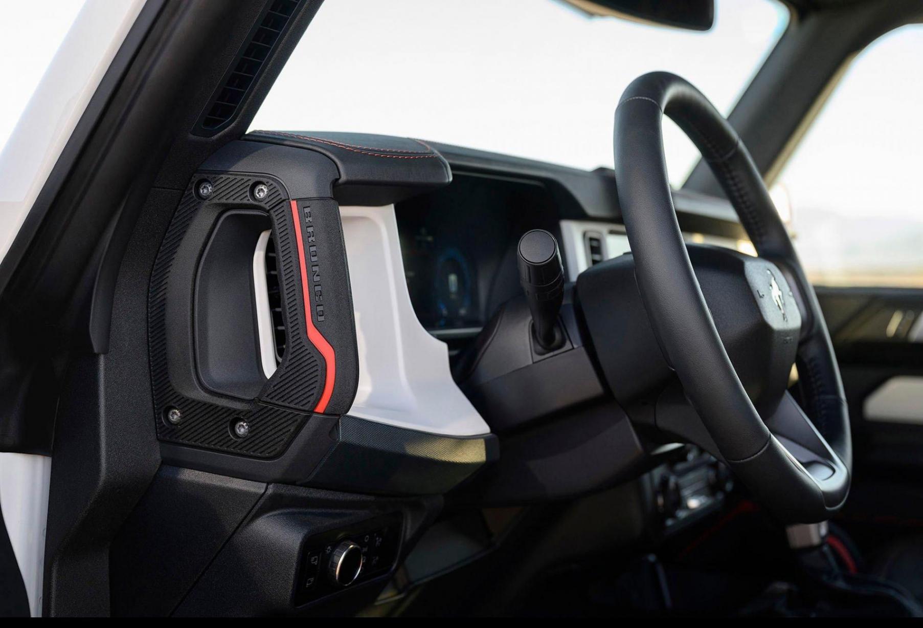 福特Bronco Stroppe特別版基于兩門Wildtrak車型,配備大量硬核硬件。清單包括斷開式前防傾桿、35 英寸固特異Territory RT輪胎以及HOSS 3.0懸掛系統和Fox內部旁通減震器。Stroppe 特別版還配備了帶有內置護板的側踏板。它由330 馬力的2.7升渦輪增壓四缸發動機驅動,匹配10速自動變速箱和標準四輪驅動。