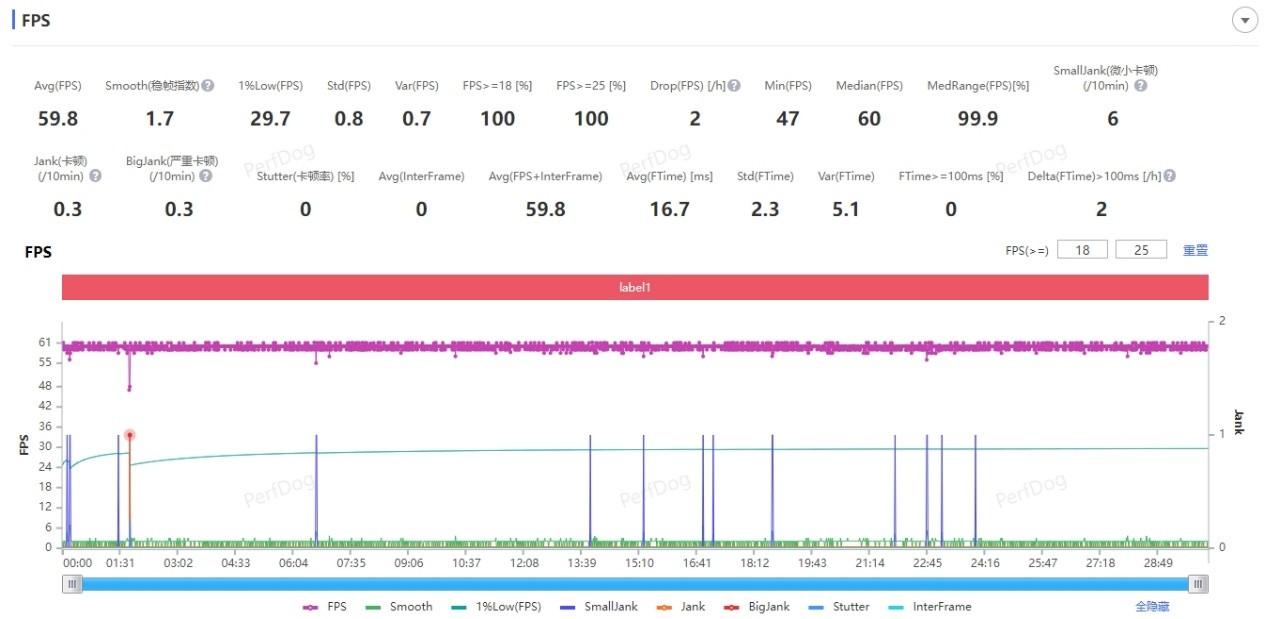 在《崩壞:星穹鐵道》的游戲跑圖測試中,測試畫質設置為非常高+60幀,測試場景為星槎海中樞跑圖30分鐘。經過實測,OPPO Find X8 Pro的平均幀率為59.8幀,平均功耗為4.2W,表現驚艷。