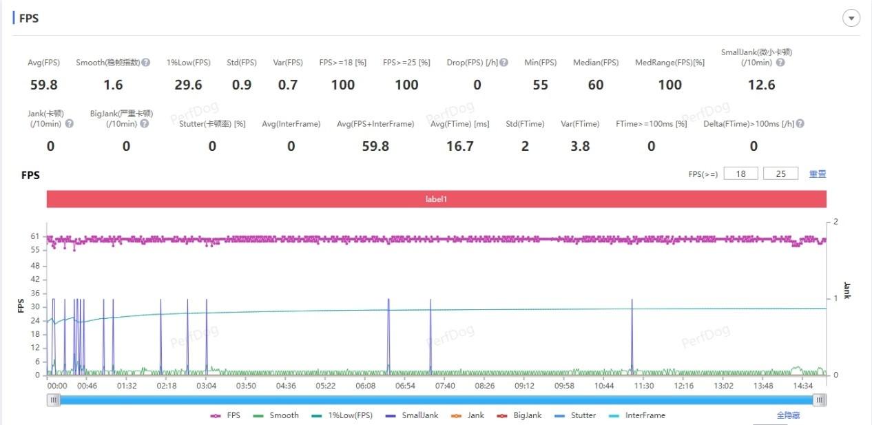 在渲染壓力更大的《崩壞:星穹鐵道》黃金的時刻跑圖測試中,測試畫質設置為非常高+60幀,經過實測,OPPO Find X8 Pro的平均幀率同樣為59.8幀,平均功耗為5.7W,是當下智能手機的天花板水平。