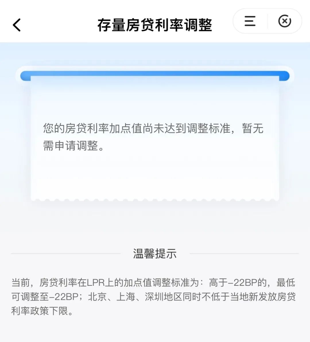 現(xiàn)階段,大部分商業(yè)銀行已在手機(jī)APP、微信小程序上設(shè)置了“存量房貸利率調(diào)整”功能模塊,客戶可直接點(diǎn)擊查詢是否滿足加點(diǎn)值調(diào)整條件,符合條件的借款人可在線提出申請(qǐng),也可與貸款經(jīng)辦行協(xié)商申請(qǐng),經(jīng)銀行審批通過后,新的利率加點(diǎn)值即日生效。