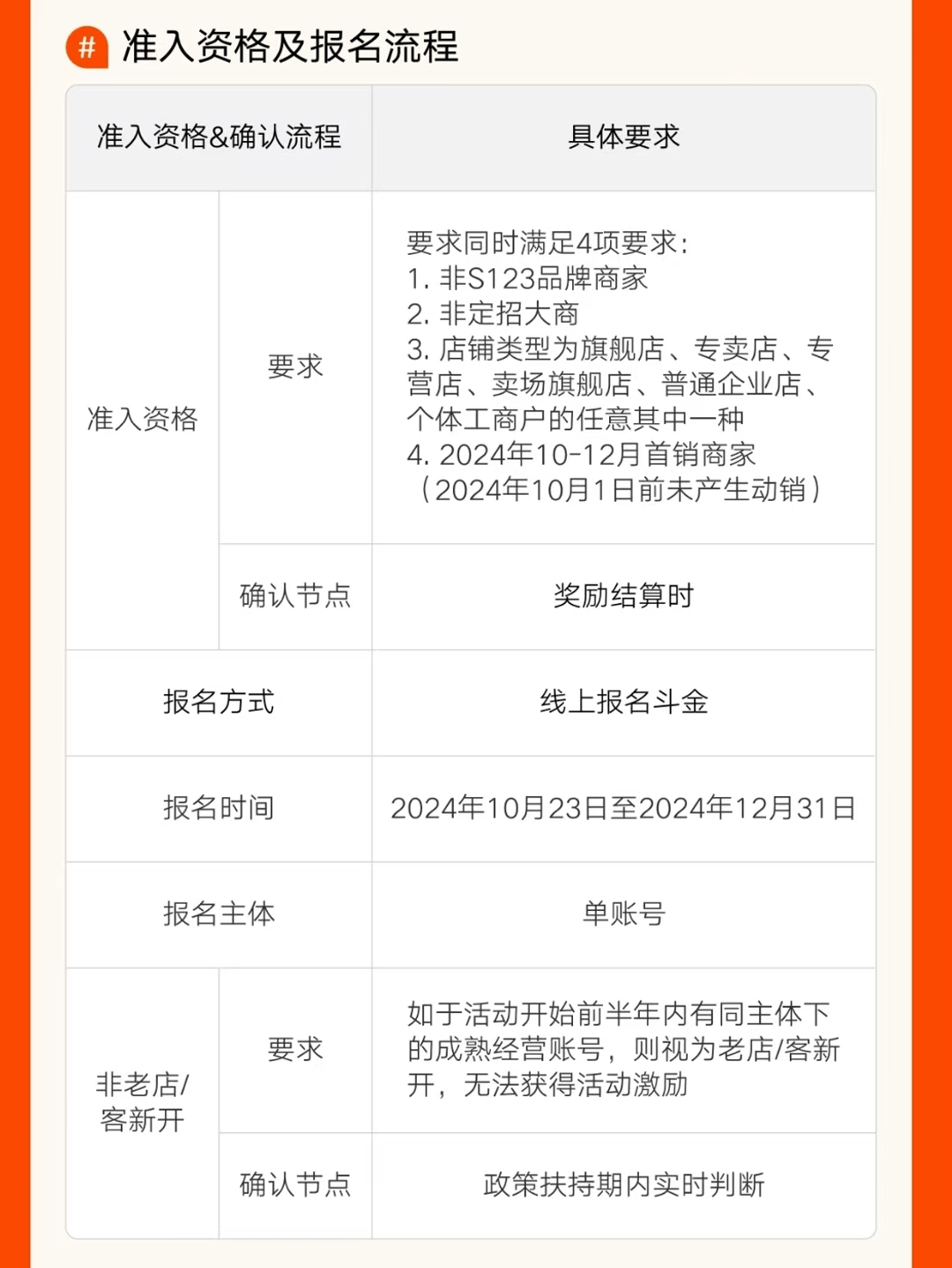 “斗金計劃”新動銷商家權(quán)益準入資格及報名流程
