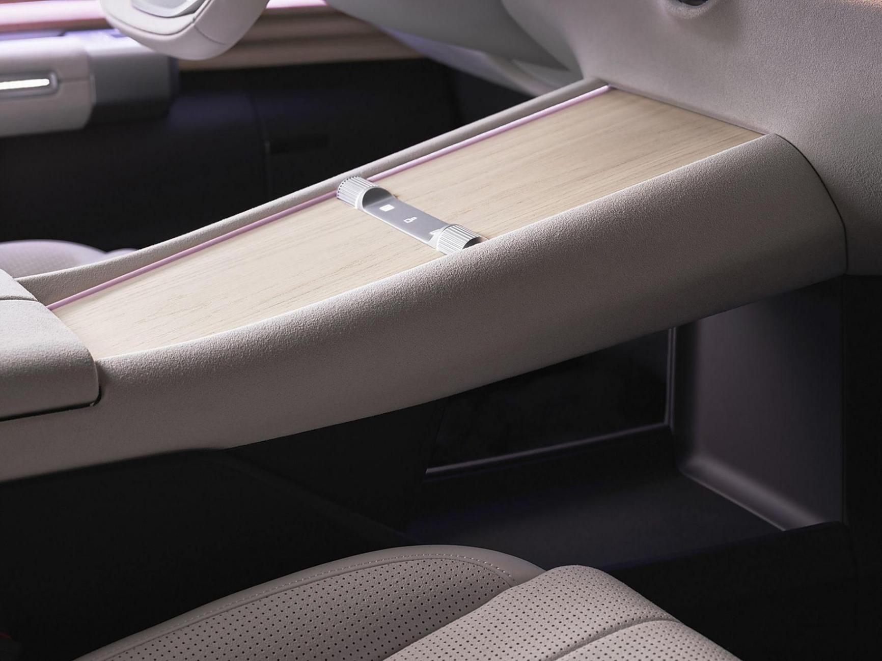 車側部分,前高后低的車身姿態營造出一種俯沖感,顯得十分運動。具體來看,新車采用了八輻式對比色輪圈,配備了隱藏式門把手,外后視鏡很窄。很顯然,這是流媒體后視鏡,上面有攝像頭。