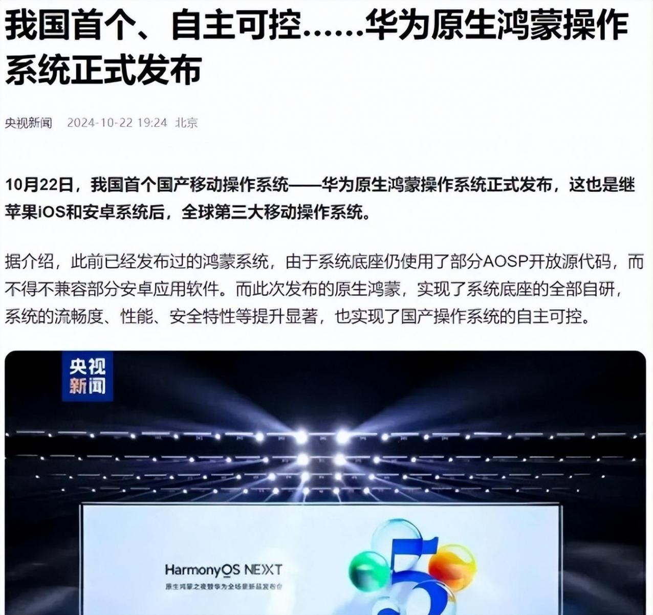 華為剛剛干了件大事!2024年10月22日,他們推出了一個完完全全是中國自己研發的手機系統——原生鴻蒙。這可不是鬧著玩的,這意味著咱們中國人終于有了自己的手機操作系統,不用再看蘋果和安卓的臉色了!