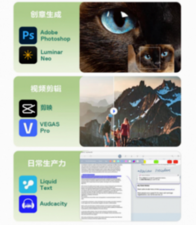 其AI加速可以應(yīng)對(duì)豐富的軟件,提供更強(qiáng)的運(yùn)算表現(xiàn),戴爾這里列出來六款,包括剪映,VEGAS,PS等等。