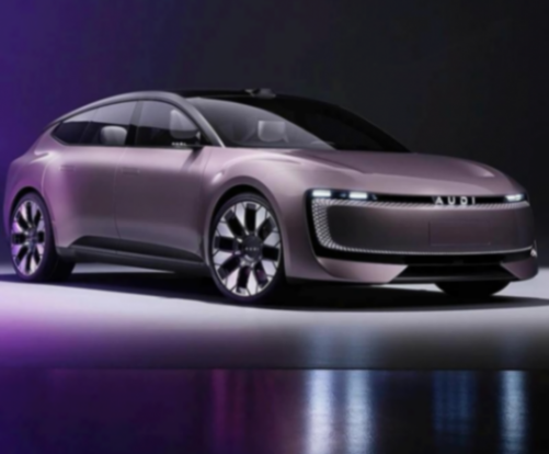 AUDI E concept 作為該品牌首款概念車,由奧迪團隊主導設計與底盤調校,上汽負責電動和智能技術及投產。其車身尺寸較大,外觀采用封閉式前臉與環形燈組,運動獵裝風格搭配電子外后視鏡和隱藏式門把手。