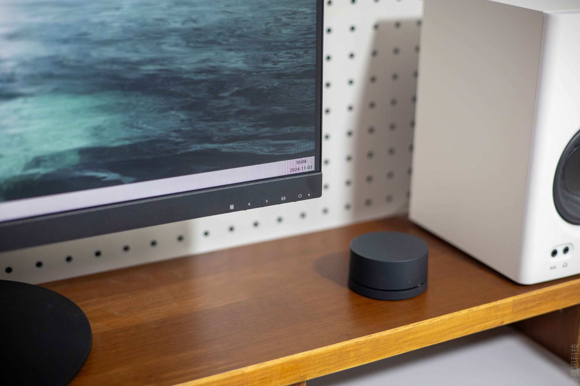 顯示器的安裝也極為簡單,這里既可以跟著說明書的步驟,也可以隨意調整。底座與支架連接,支架與顯示器連接。二者都是通過卡扣固定,因此也不需要螺絲刀之類的工具輔助。另外,從顯示器的背部的四個螺孔也看的出來它支持VESA壁掛。