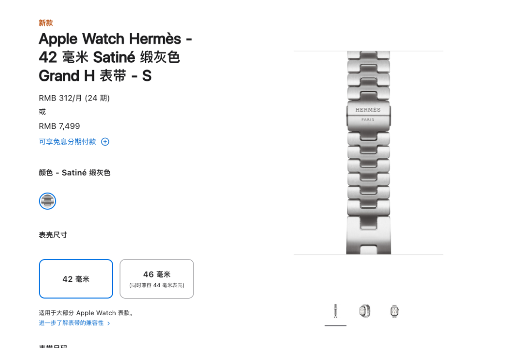 這款蘋果聯合 Hermès 的不銹鋼表帶目前售價為 7499 元,主要變化就是多了 Hermès 的標志。
