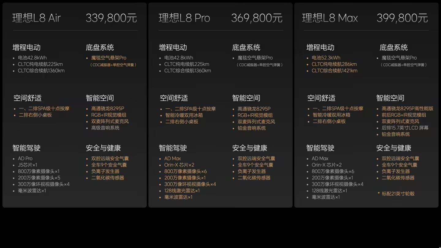 Max 車型進(jìn)一步升級(jí)了 52.3kwh 大電池增程系統(tǒng)、高通 8295P 高性能版、后排娛樂(lè)屏和 21 寸輪轂。