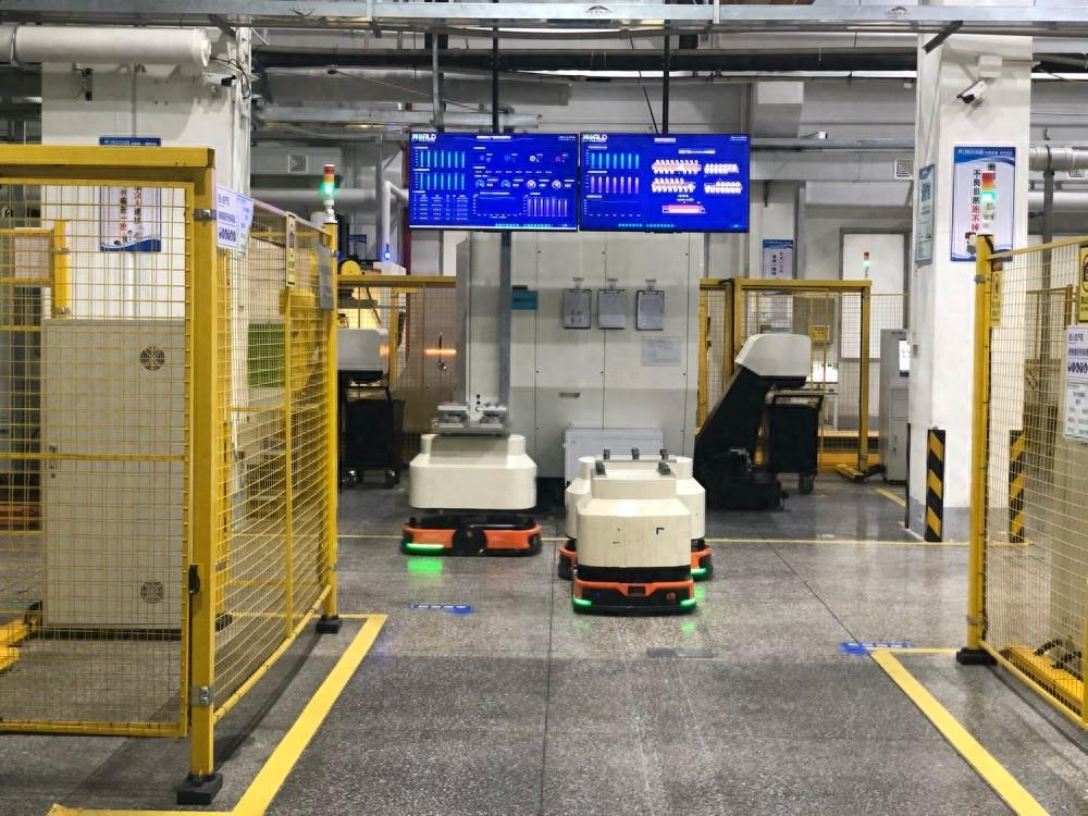 在沃德精密智能工廠,AGV機(jī)器人正在自動進(jìn)行物料配送。程浩 攝