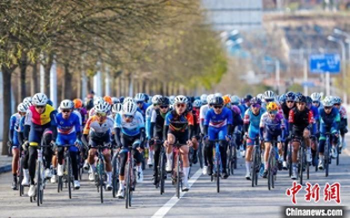 11月16日,2024環門頭溝國際公路自行車賽暨2024門頭溝山野戶外騎游大會在北京市門頭溝區開賽。圖為選手在比賽中。(主辦方供圖)