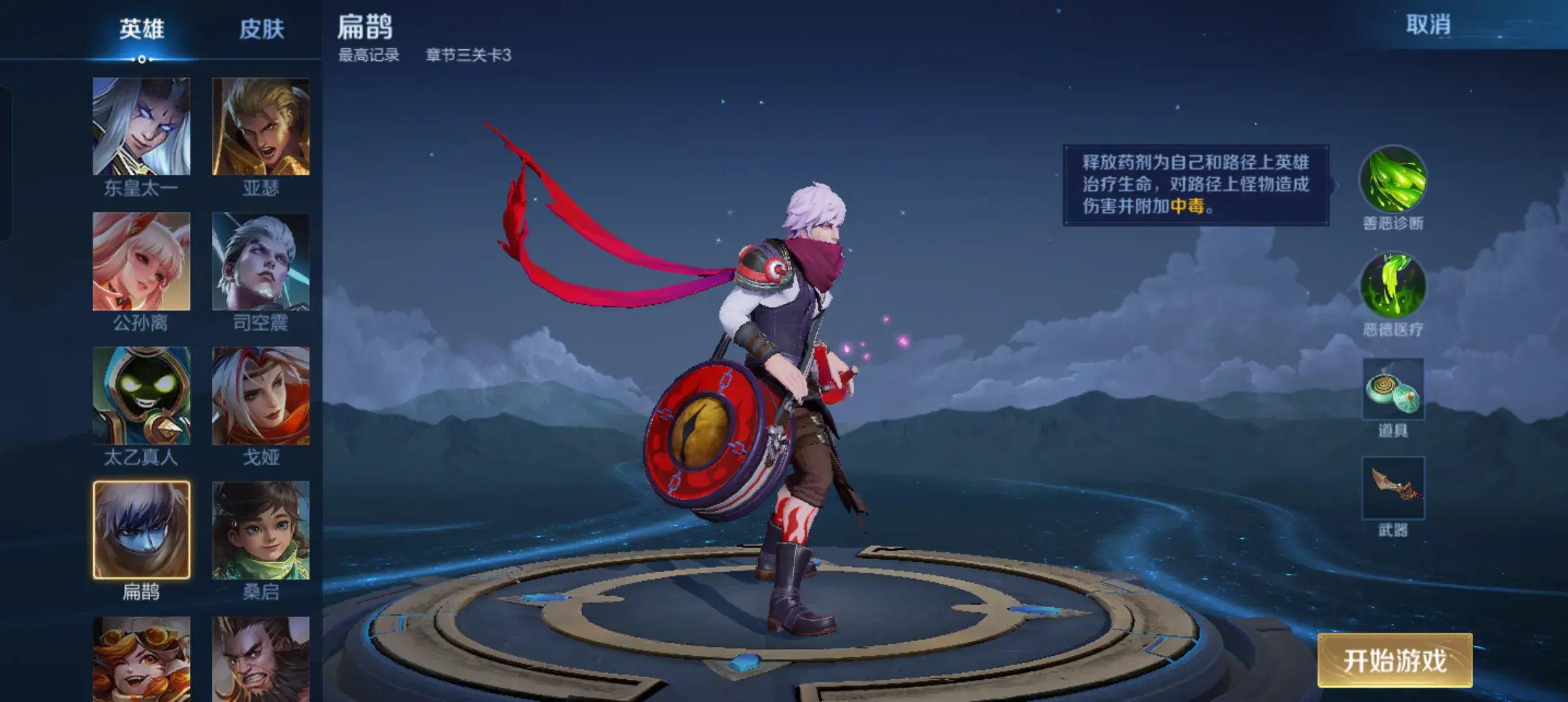 英雄選擇扁鵲釋放技能有回血效果,天賦要記得提前先點滿