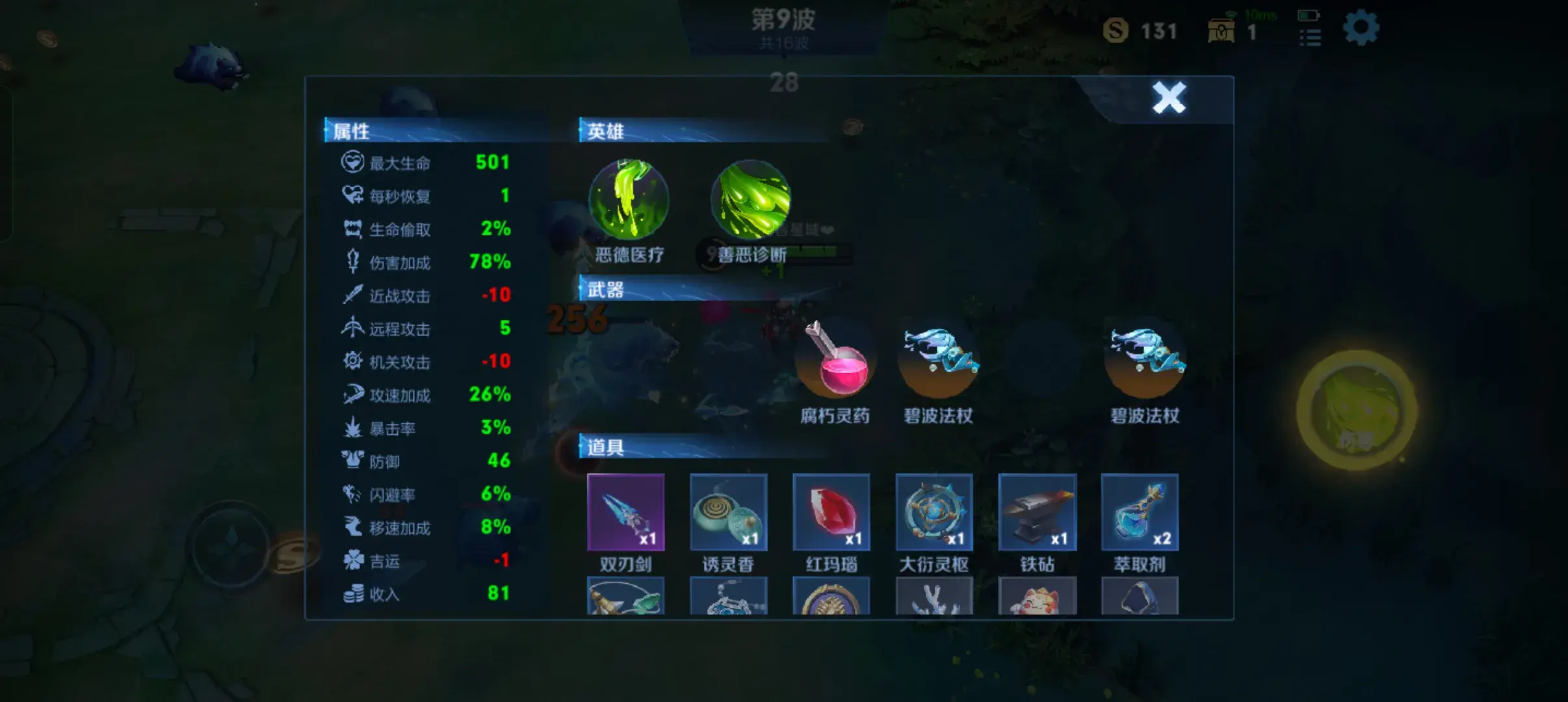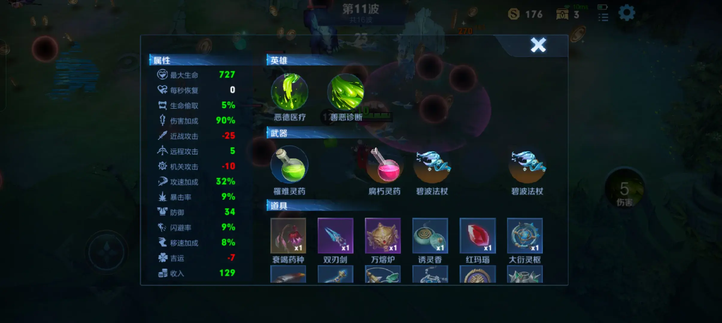 第15關傷害加成214%(拿刷傷害的道具刷了)已經隨便打加點吸血隨便無敵