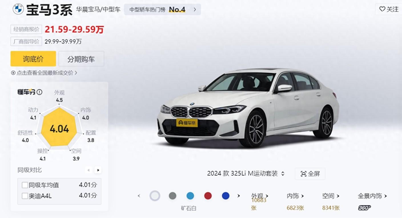 目前寶馬3系,325版本優惠了8.23萬元,相當于是七三折,和奧迪汽車差不多了,而330版本則是優惠了9萬多元。如果不在乎新款還是舊款,那么2023款 320i M運動套裝的寶馬3系優惠后裸車價格直接到了21.59萬元,并且部分店內還可以談,這個價格選擇寶馬3系,不比大眾帕薩特,豐田凱美瑞香嗎?