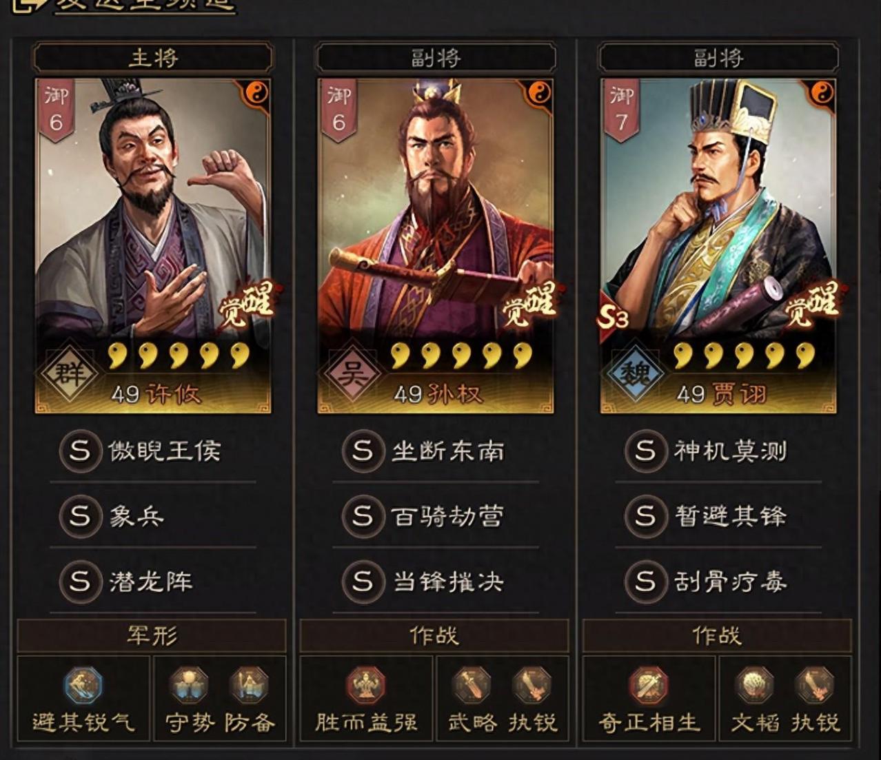 本期推薦組合,潛龍?jiān)S攸孫權(quán)賈詡;