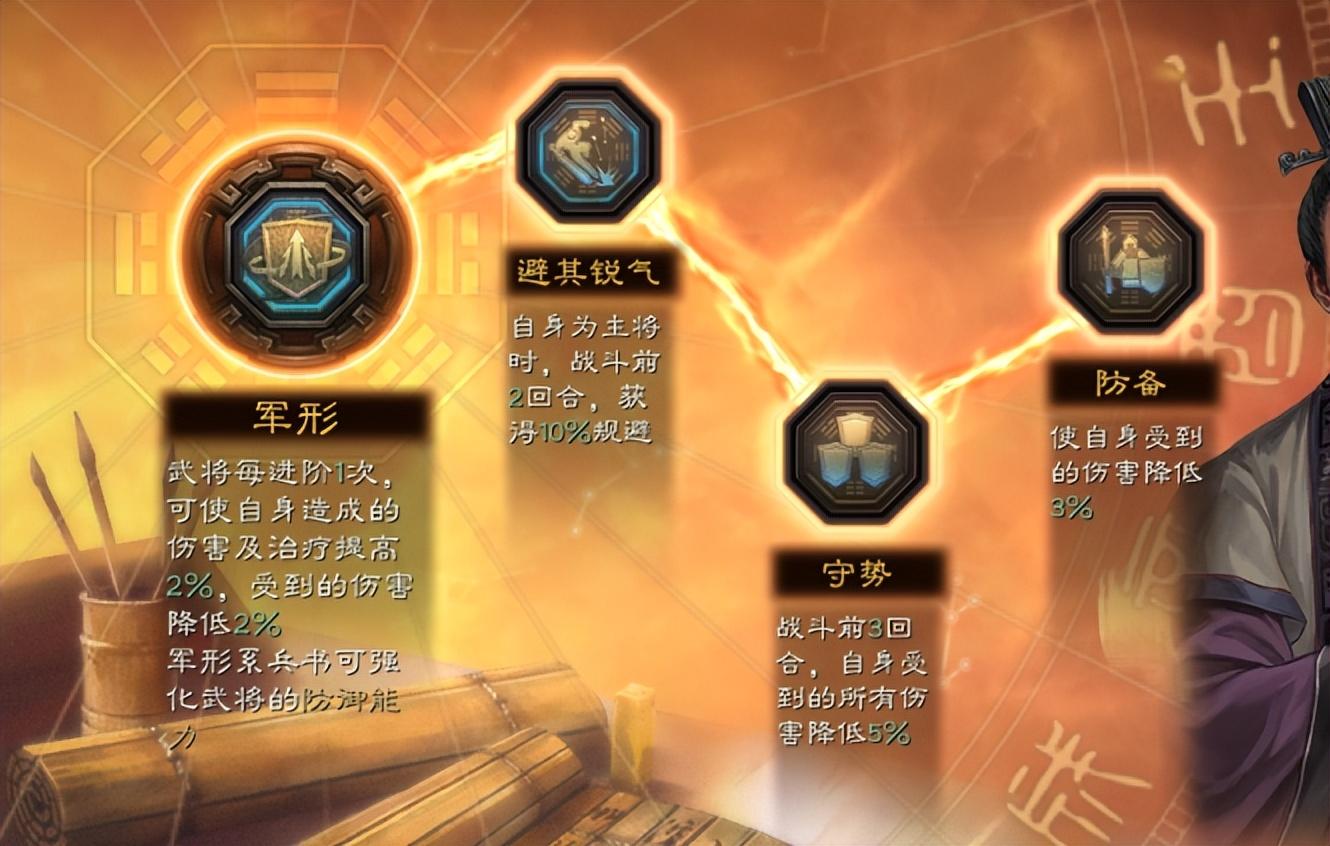 因?yàn)檫@里許攸是主將,所以這邊給許攸的兵書是規(guī)避+受到傷害降低。