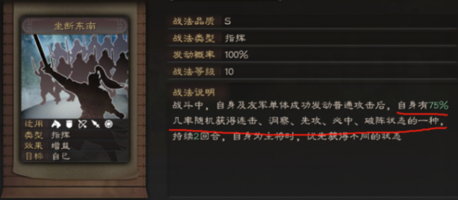 第一副將孫權(quán),堆各種狀態(tài),且是自己及友軍普攻都可以為自己觸發(fā),基本都能觸發(fā)十幾次。普攻次數(shù)基本能趕上太史慈,為隊(duì)伍提供強(qiáng)有力的普攻數(shù)量。加之配套的百騎截營(yíng),讓自己的輸出更加的強(qiáng)力,配上當(dāng)鋒,給對(duì)面無限多的控制。