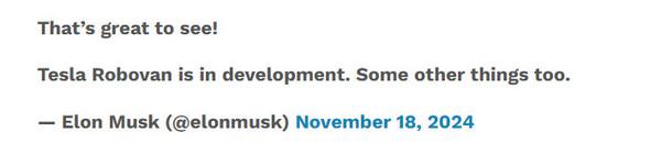 此外,馬斯克再次暗示可能會推出其他新產品。馬斯克承認,除了Robovan之外,特斯拉還有“其他一些東西”正在開發中,這對于那些擁有大家庭且需要的不僅僅是七個座位的人來說是一個好消息。