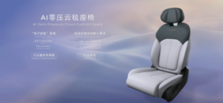 例如在N7的座艙內,搭載了AI零壓云毯座椅。這套座椅,不僅僅是對日產經典座椅設計的繼承。同時,它還集合了49個傳感器和自適應體態AI核心算法等創新技術。在乘客坐上去之后,座椅能自動感知、自動調整甚至學習用戶的使用習慣,確保乘客可以隨時享受到最舒適的零壓坐姿。
