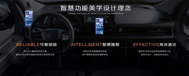 在造型設計方面,長安凱程堅持智慧功能美學設計理念,從設計源頭為用戶帶來智慧功能體驗。一是通過理性清晰、簡潔純粹的功能化設計語言,體現(xiàn)簡約與力量感的完美平衡。通過功能導向、可靠耐久的材質(zhì)應用,賦予產(chǎn)品極致大空間和可靠耐用的保護感和信任感;二是運用創(chuàng)新數(shù)智立方體和懸浮膠囊?guī)缀卧O計,為產(chǎn)品注入獨特的科技智慧視覺體驗,并通過高效的交互設計滿足多場景體驗需求;三是圍繞用戶和場景,以效率為核心,打造模塊化空間和便捷的HMI,提供定制化設計,滿足專業(yè)需求,帶給用戶功能適用且貼心的價值體驗。