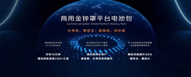 在電池設計方面,長安凱程憑借長安汽車電池研究院的成熟研發(fā)管理體系,商用金鐘罩平臺電池包具備長壽命、真安全、超高效、快補能的技術特點。電池包采用高效液冷快充系統(tǒng),可拓展搭載2C、4C快充技術,用戶只需充電15分鐘,即可獲得200公里以上的續(xù)航里程增加。電芯采用多功能涂層包覆負極材料以及電解液成膜改性,提高壽命至4000個循環(huán),可為用戶提供8年60萬公里以上質(zhì)保,滿足商用車用戶高里程、長壽命使用需求。