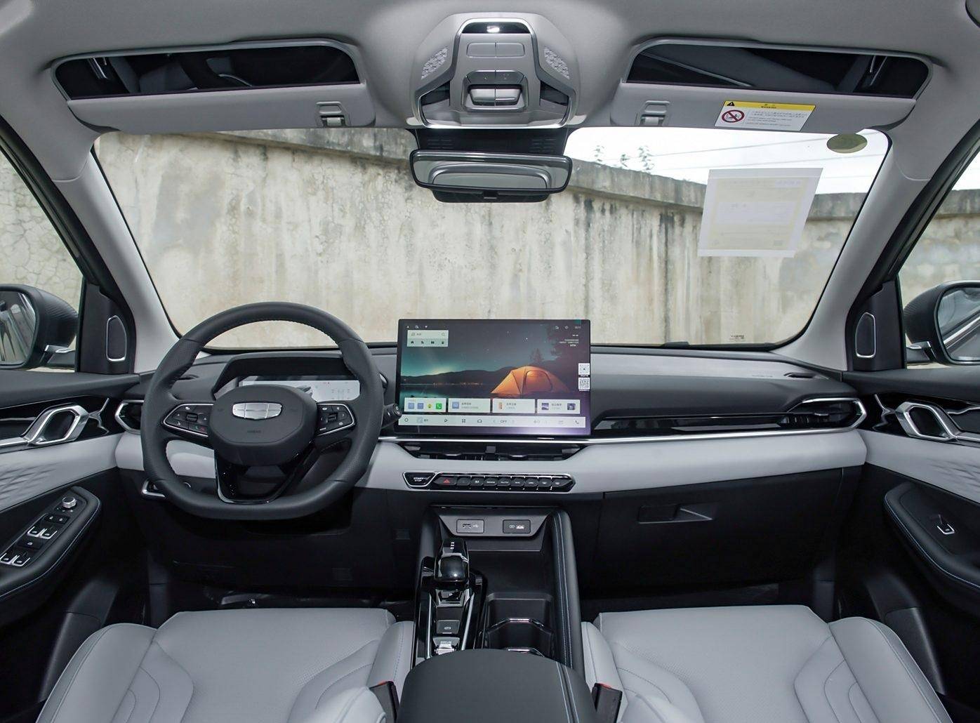 與外觀的設計風格類似,吉利繽越L的內(nèi)飾設計整體的風格偏向于年輕時尚,中控臺有著一定的層次感,而兩塊大尺寸的屏幕則給內(nèi)飾增添了不錯的科技感;另外,與同價位的車型相比,吉利繽越L在內(nèi)飾用料方面的表現(xiàn)也不錯,內(nèi)飾用到了不少軟性材質(zhì)的包裹。配置方面,例如倒車雷達、360度全景影像、自動駐車、定速巡航、無鑰匙進入、無鑰匙啟動、LED大燈、14.6英寸中控大屏、皮質(zhì)多功能方向盤、自動空調(diào)、后座空調(diào)出風口等配置新車均做到了全系標配。