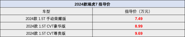 新款瑞虎7其實(shí)最大的變化就是把價(jià)格明顯下調(diào)了,讓他更具性價(jià)比,不過入門款車型價(jià)格優(yōu)惠后雖然不到7萬,但手動(dòng)擋車型確實(shí)不太受用了,家庭用戶更建議選擇2024款 1.5T CVT豪華版,適應(yīng)人群會(huì)更廣一些,