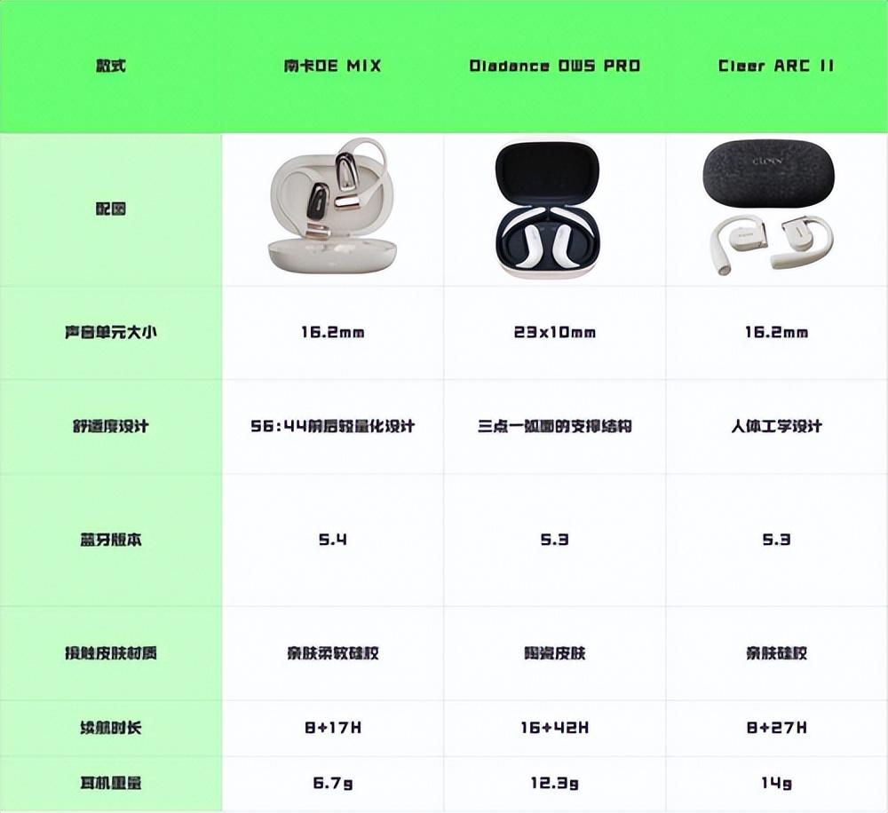 在測評開始之前,我先把這三款開放式耳機的配置放在這里給大家看看,大家看完配置之后對后面的測評也比較有準備。