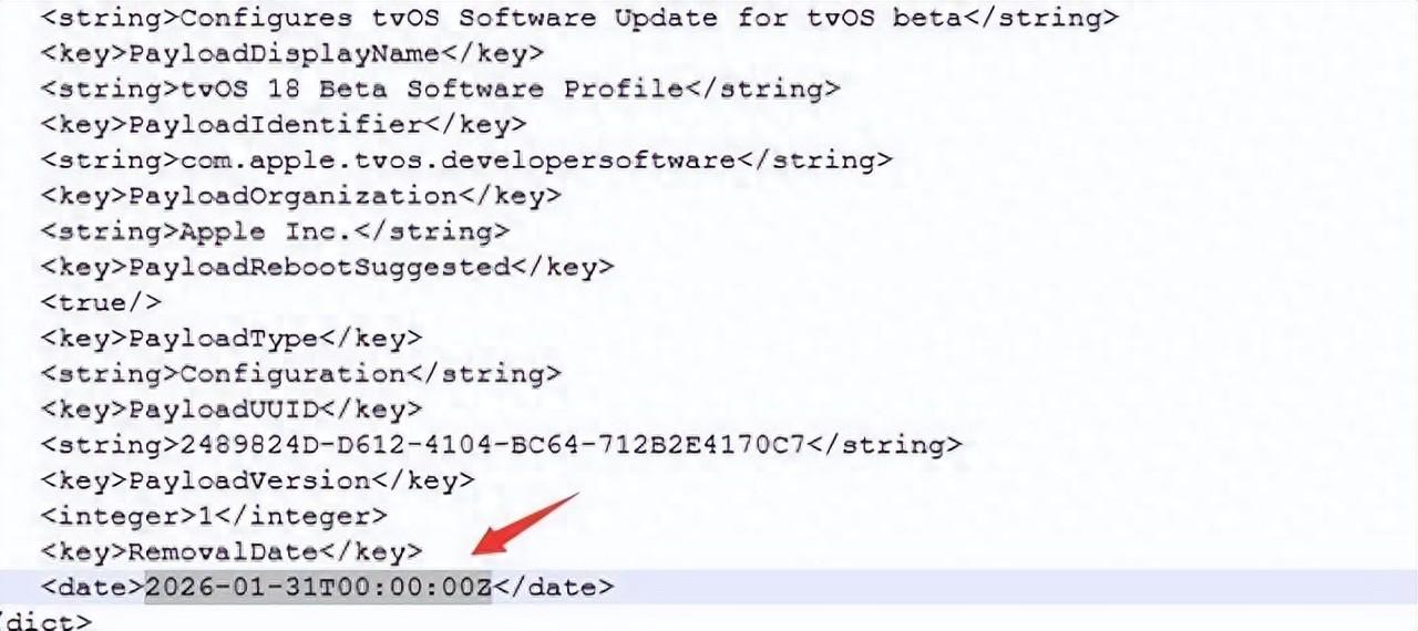 但現在,蘋果推出了tvOS 18描述文件,情況就不一樣了。這個新描述文件的有效期一直持續到2026年8月22日,而且安裝起來簡單多了,直接下載安裝就行,不用改日期。這樣一來,用戶再也不用擔心頻繁更換描述文件的問題了。對于那些喜歡折騰的技術達人還有一個更狠的方法——通過Filza這樣的文件管理器,直接修改描述文件里的到期時間,這樣就能實現“永久”屏蔽的效果。不過,這個方法風險也不小,不是每個人都能搞定的。