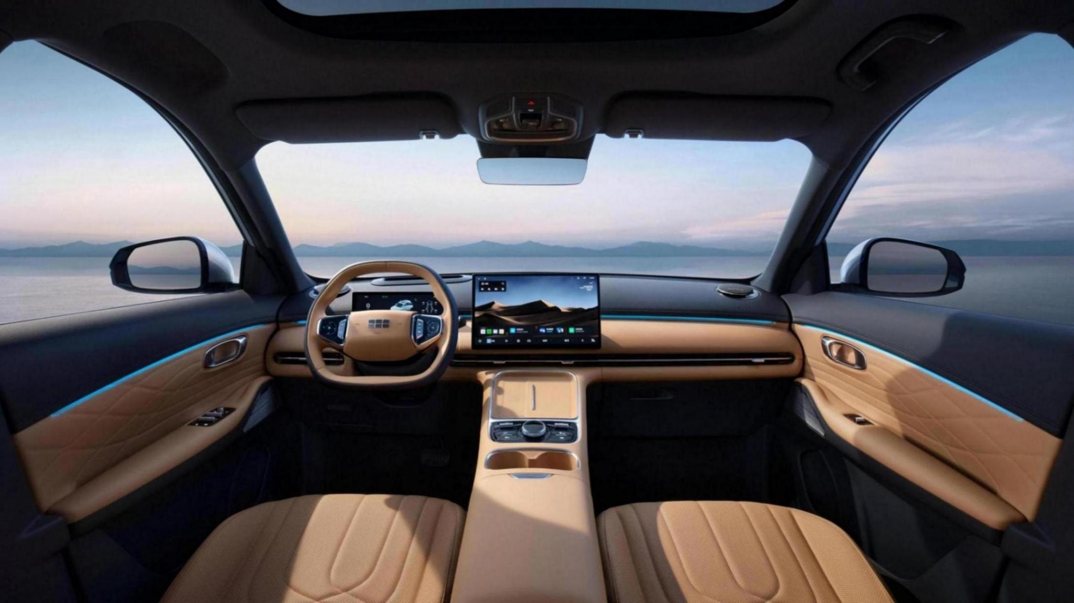 銀河星艦7的內飾分秋韻棕和映雪白兩種配色,顯得車內氛圍不那么壓抑。布局方面采用的是T字形經典設計,配了懸浮式液晶儀表盤和大尺寸中控屏,還有一個13.8英寸的HUD抬頭顯示,這樣開車看信息不用低頭,確實提升了安全性。