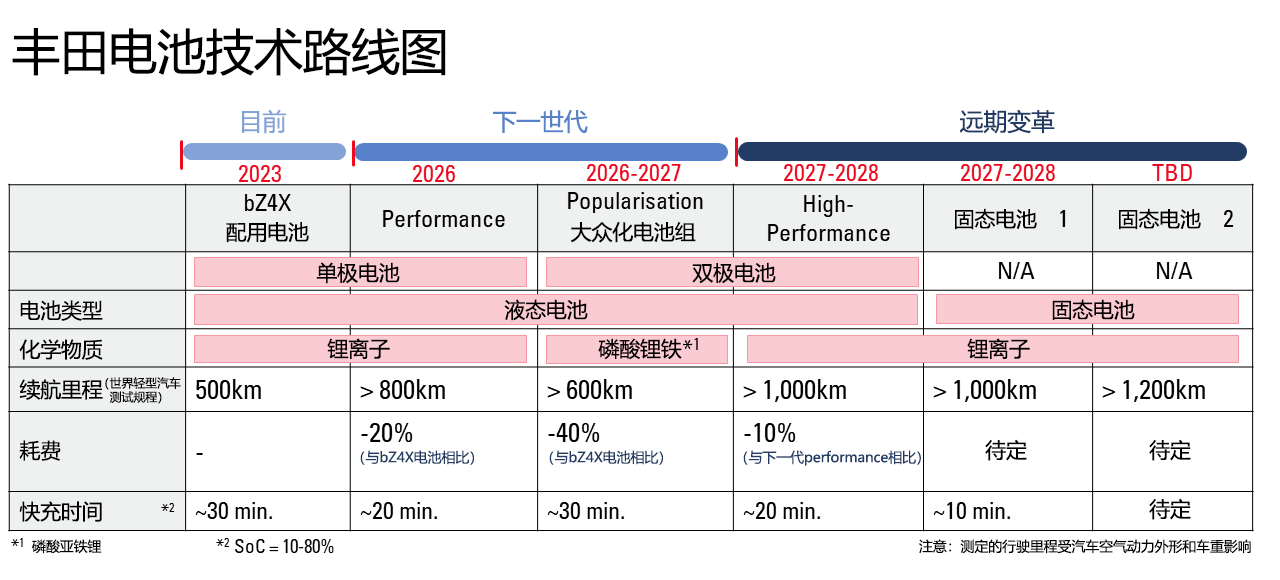 根據老圖的查證,豐田的未來電池計劃是最早將于2028年左右推出首款固態電池,WLTP續航里程超過620英里(1,000 公里),并支持10分鐘快速充電80%,這意味著五年內,豐田的固態電池沒戲。