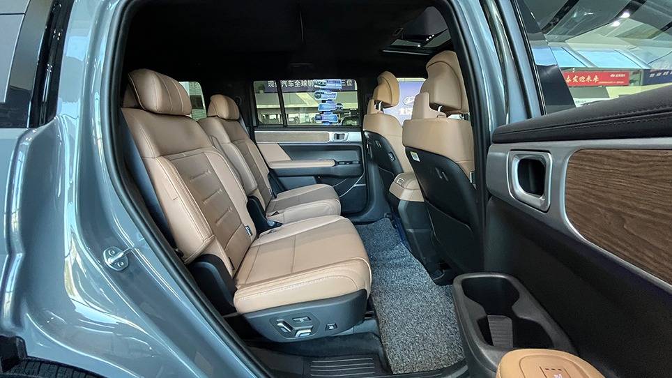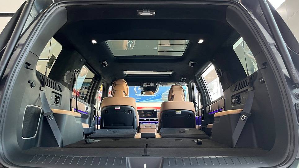 同時(shí),第二排和第三排座椅都一鍵放倒至純平。后備箱容積可擴(kuò)展至2046L,方正碩大可滿足大件物品放置,尾門(mén)采用感應(yīng)式設(shè)計(jì),且開(kāi)口下沿很低,方便乘客取拿大件行李。