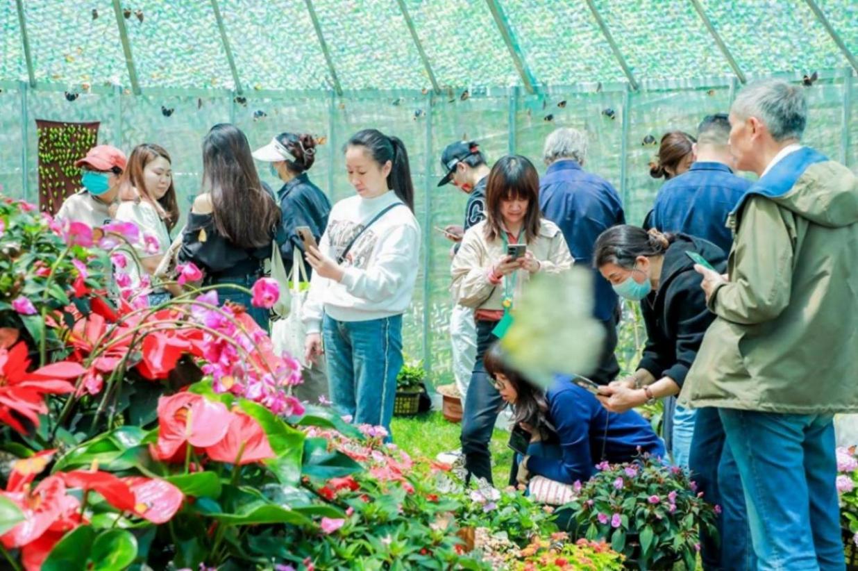 最近,走在上海長寧區(qū)愚園路上的人會發(fā)現(xiàn)一頂特別的大帳篷,走入其中,成片花蝴蝶流連鮮花間,不時也停到人的指間,惹人喜愛。