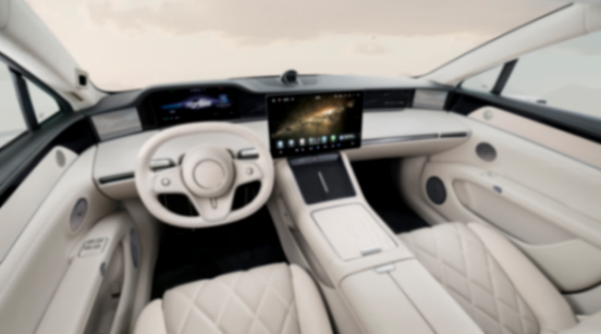 享界S9的內飾設計將12.3英寸液晶儀表盤、15.6英寸智能中控大屏以及兩側的智能電子外后視鏡顯示屏流暢銜接,使得各個屏幕恰如其分地布置在雙露臺之間,內艙非常規整。這一設計也使得儀表臺前推,全新橄欖型方向盤給駕駛者帶來較好的握持感,使操控更靈活順手的同時,無需低頭便能獲取駕駛信息,盲區極小,視野更加開闊。